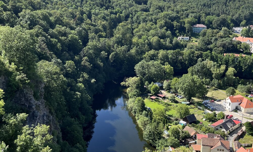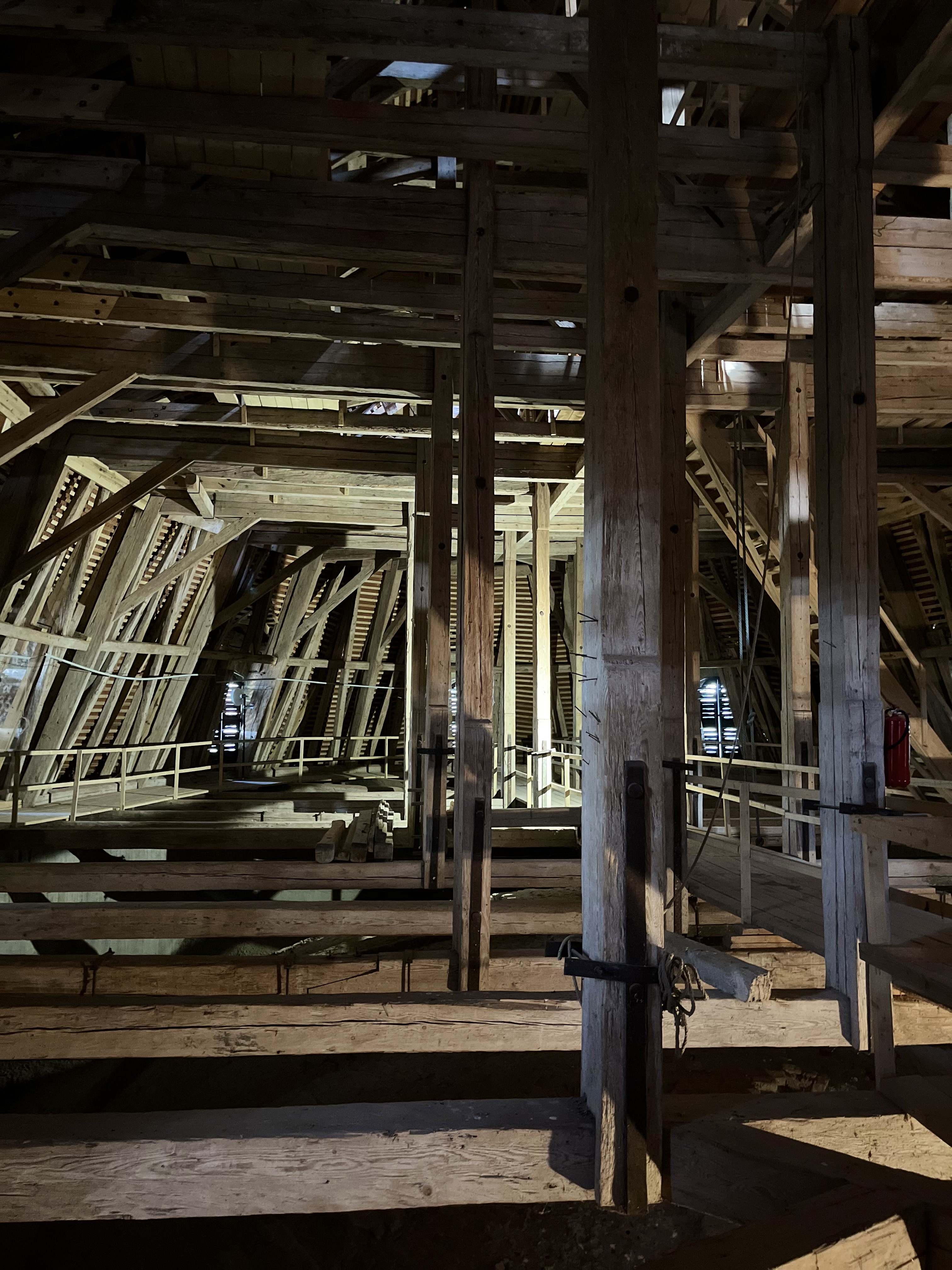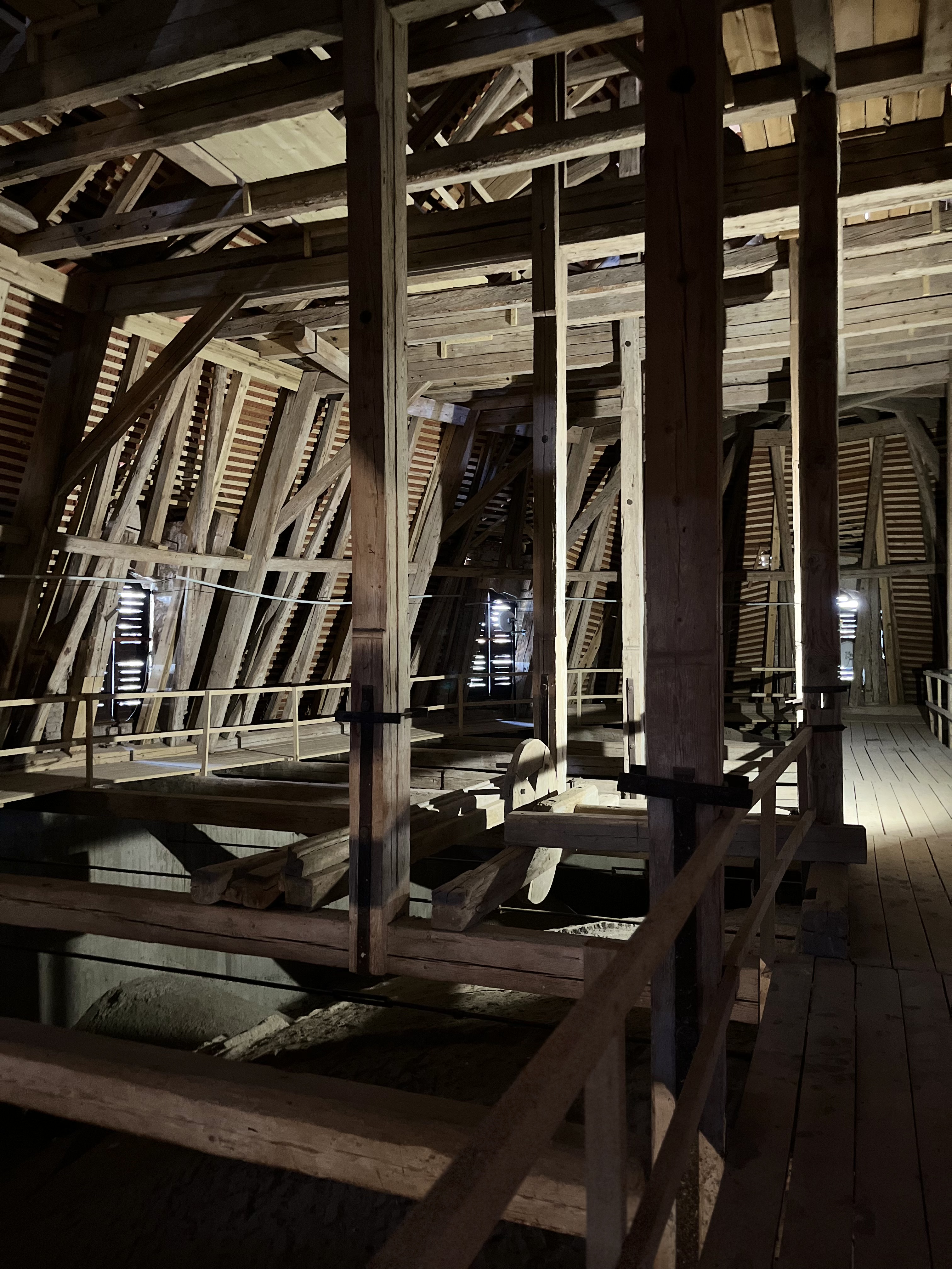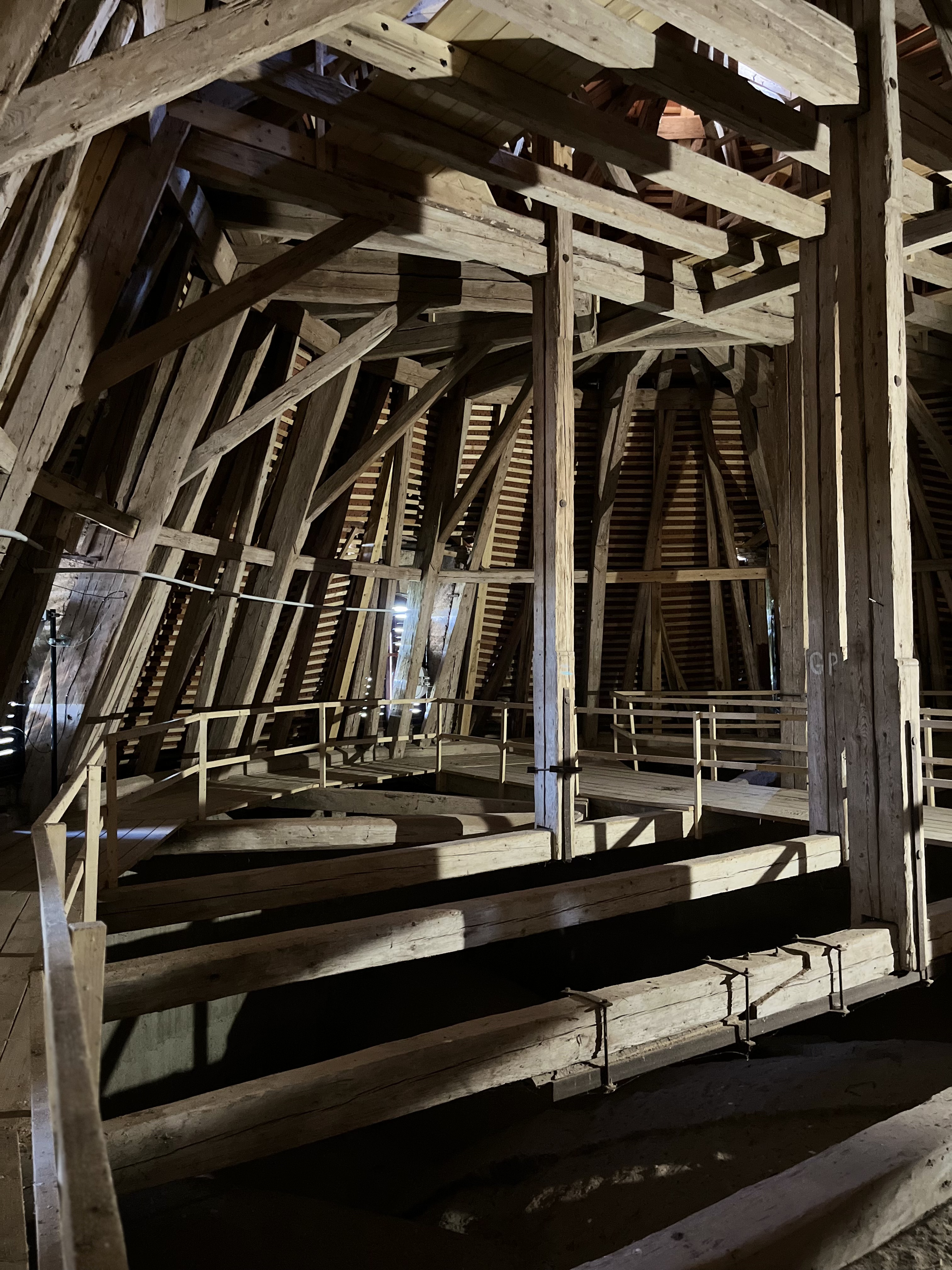Nepřijdete ani o pohled ze severní terasy s výhledem na údolí řeky Dyje - místo, kde se historie potkává s krajinou. Seznámíte se s příběhem vody na hradě – včetně jedinečných vodních věží a rumpálu, kterým se čerpala voda přímo z řeky. Zlatou tečkou na závěr bude i střešní konstrukce a krov nad Sálem předků – prohlédnete si rozsáhlý, devět metrů vysoký dvoupatrový krov z roku 1740.